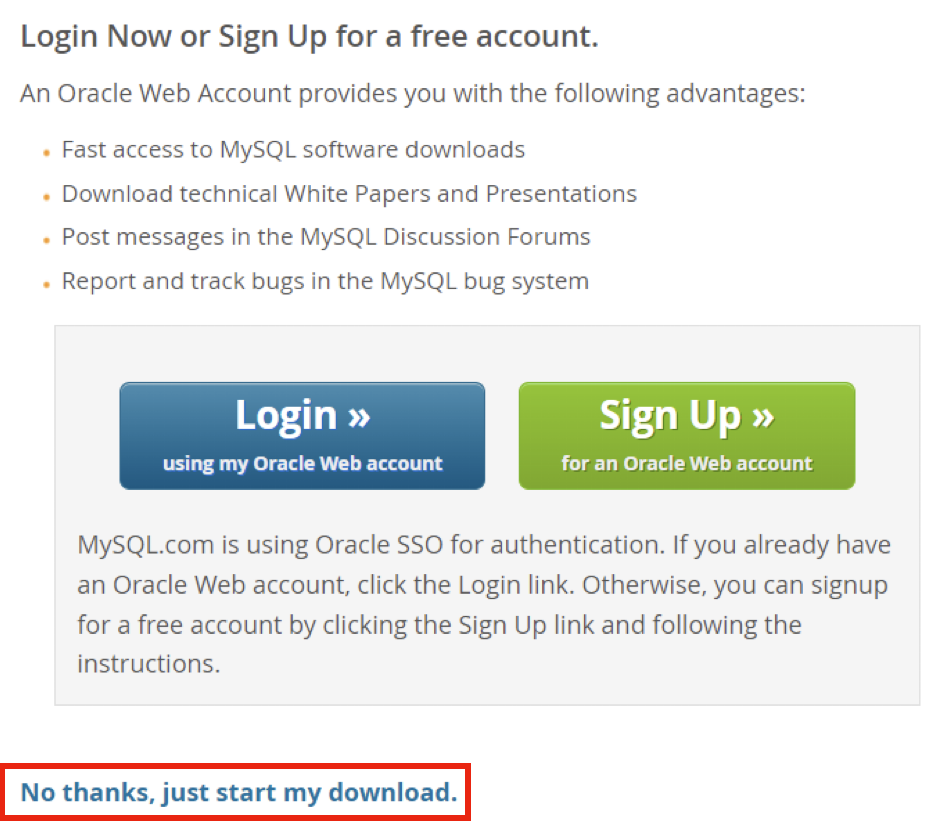 오라클 계정을 가진 사람은 Login 버튼, 계정을 만드는 사람은 Signup 버튼, 계정 없이 다운로드 받는 사람은 아래의 “Nothanks, just start my download”를 클릭한다.다운로드 받은 설치 프로그램을 열고 설치를 시작한 후 [계속 버튼]을 누르면 Mac 로그인 계정의 비밀번호를 누르는 창이 나타난다.맥 로그인 비밀번호 입력 후 설치된다.